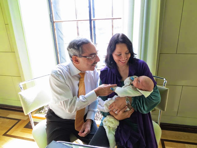 | Kaupungintalon valtuustosalissa 2012 moikkaamassa äitiä |