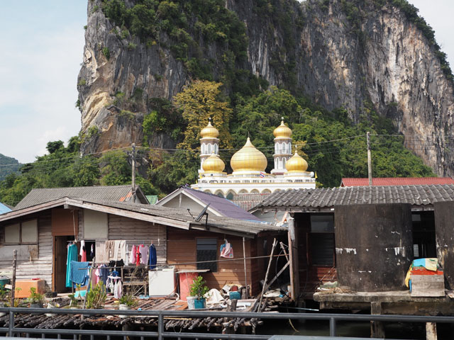 James Bondin saarelta mentiin lounaalle meren päälle rakennettuun muslimikylään Panpheehen. Tarjolla oli buffamuotoinen lounas. Kiersimme kylää lounaan jälkeen ja täytyy kyllä ihmetellä, miten elämä sujuu noissa oloissa. Kylässä oleva Moskeija on ristiriidassa kylän sotkuisen ilmeen kanssa. Päiväkodissa ja koulussa oli hauska kurkkia esikoisen kanssa ovista sisään. Siellä oli ihan siistin oloista.